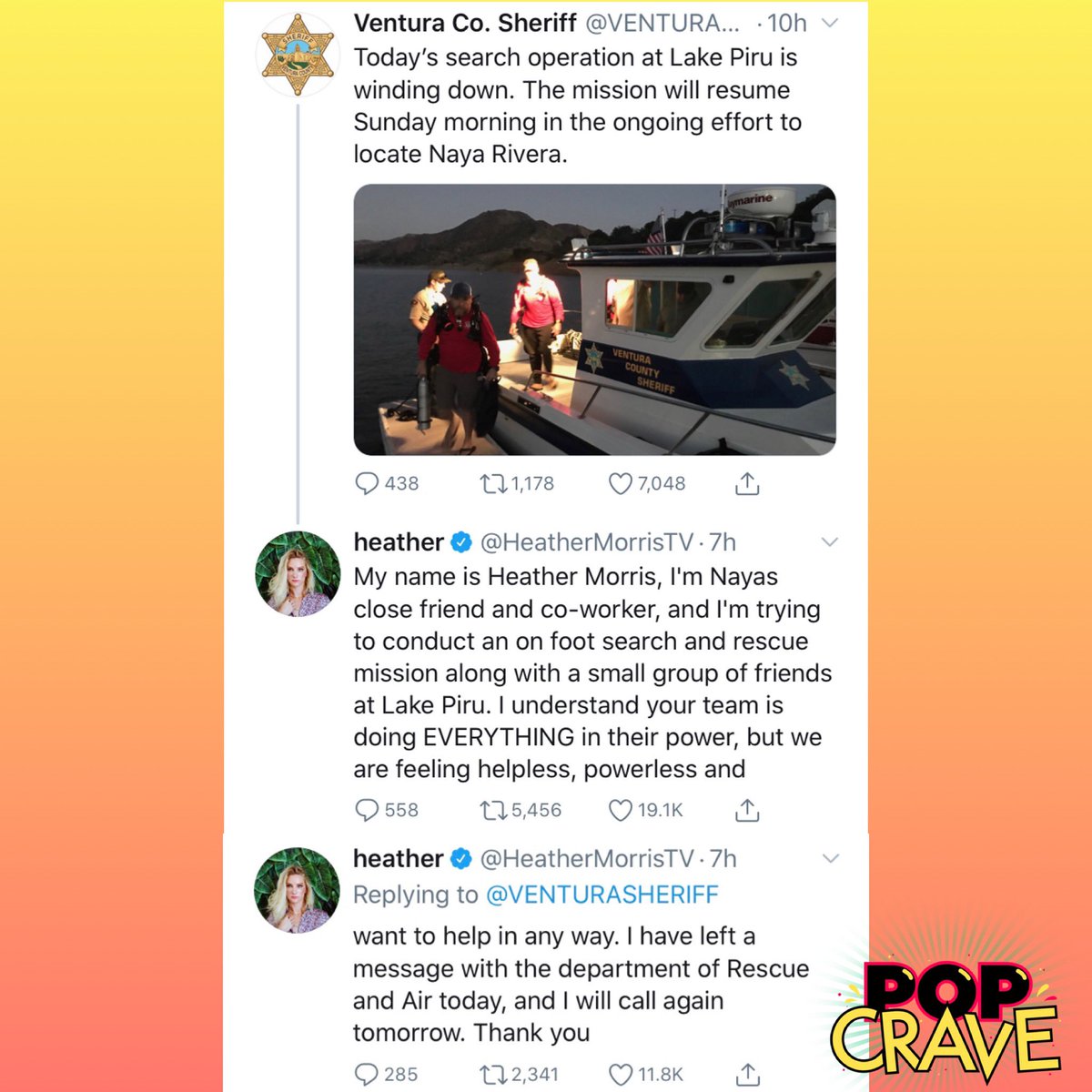 Pop Crave On Twitter Heather Morris Has Contacted Authorities To Offer Her Help In The Search For Naya Rivera Who Has Been Missing For Five Days I Understand Your Team Is Doing