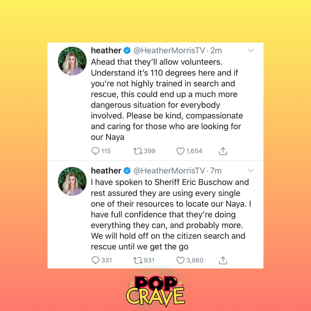 Twitter Heather Morris Contacto A La Policia Para Involucrarse En La Busqueda De Naya Rivera Vix